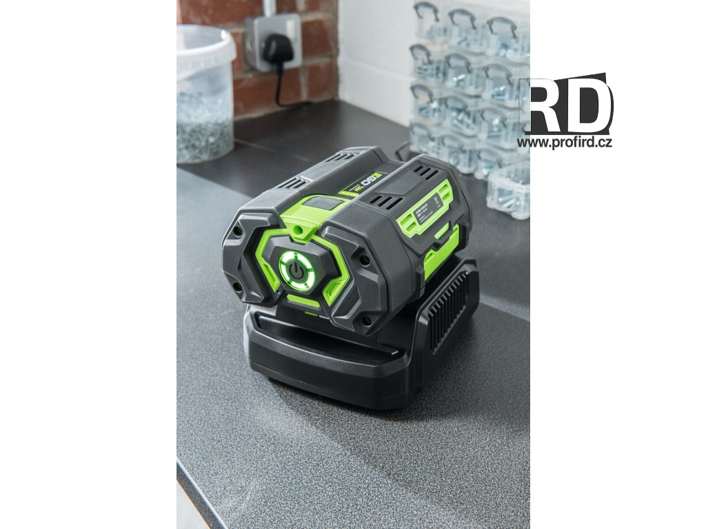 Pro standardní nabíjení baterií EGO je nutné použít inteligentní nabíječky EGO. Standardní nabíječka je opatřena ložem baterie tak, aby se baterie dostala do nabíječky pouze správným způsobem. Nabíječka je opatřena řídící elektronikou, která naprosto samostatně vyhodnotí stav baterie a automaticky zvolí režim nabíjení, dobu nabíjení a nabíjecí proud. Stav baterie a aktuální stav nabití je indikován LED diodami na panelu. Nabíječka je tak plně automatická bez jakéhokoliv nutného zásahu ze strany uživatele. Ergonomicky je navržena tak, aby byla dostatečně stabilní. Například od "0" do plného nabití 2,5Ah baterie trvá této nabíječce 50 minut a baterie 5,0Ah 100 minut. Takže při střídání dvou baterií mnohdy pokryjete výkon potřebný pro celodenní práci.