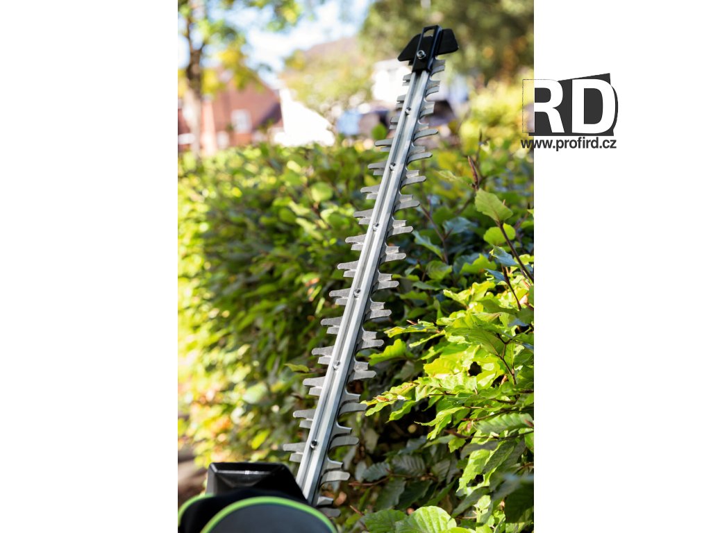 Pro kvalitní úpravu a precizní tvarování živých plotů a okrasných dřevin je důležitý čistý a přený střih, kterým rostlinu nepoškodíte, nezraníte a rostlina tak po zastřižení zůstává zdravá a svěží. Proto jsou tyto akumulátorové nůžky na živý plot vybaveny přesnou, vysoce kvalitní 61cm dlouhou oboustrannou lištou, přesně broušenou pomocí diamantového nástroje. Mimořádně ostré střižné zuby mají rozteč 26mm a hloubku 17mm a jsou schopny ustřihnout dřevinu do průměru až 15 mm. Ochranný doraz špičky lišty zabraňuje poškození při případném kontaktu lišty se zdí či jinou pevnou překážkou. Pro lehkou a přesnou práci a manipulaci je celý stroj dokonale ergonomicky vyvážen. Kratší lišta v celkové délce 61cm dělá ze stroje skutečně mrštného "holiče". Jak rukojeť, tak i madlo držení je opatřeno bezpečnostní pojistkou, která zaručuje v případě uvolnění okamžité vypnutí stroje. Díky příjemné ovládácí rukojeti je držení nůžek při práci velmi stabilní, bezpečné a pohodlné. Na rukojeti je umístněn vypínač, který zajišťuje při stisknutí plynulé a postupné spuštění stroje. Na pohon nůžek na živý plot lze použít jakoukoliv baterii ze sortimentu EGO a např. baterie 2,5Ah vám umožní pracovat nepřetržitě až 75 minut a s baterií 5,0Ah až 150 minut. Naše lithiové baterie EGO Power+ 56V Arc Vám poskytnou dostatek energie pro pohon výkonného a účinného bezuhlíkového motoru s vysokou odolností proti přetížení a přímým náhonem na pracovní nástroj. Stroj je mimořádně tichý a sousedé Vás při práci ani neuslyší. Žádná napájecí šňůra, žádné provozní náplně, žádný hluk, žádný zápach. Nízká hmotnost, pohodlný úchop a snadná manipulace dělají z tohoto stroje vynikajícího pomocníka na každou i rozlehlejší zahradu.