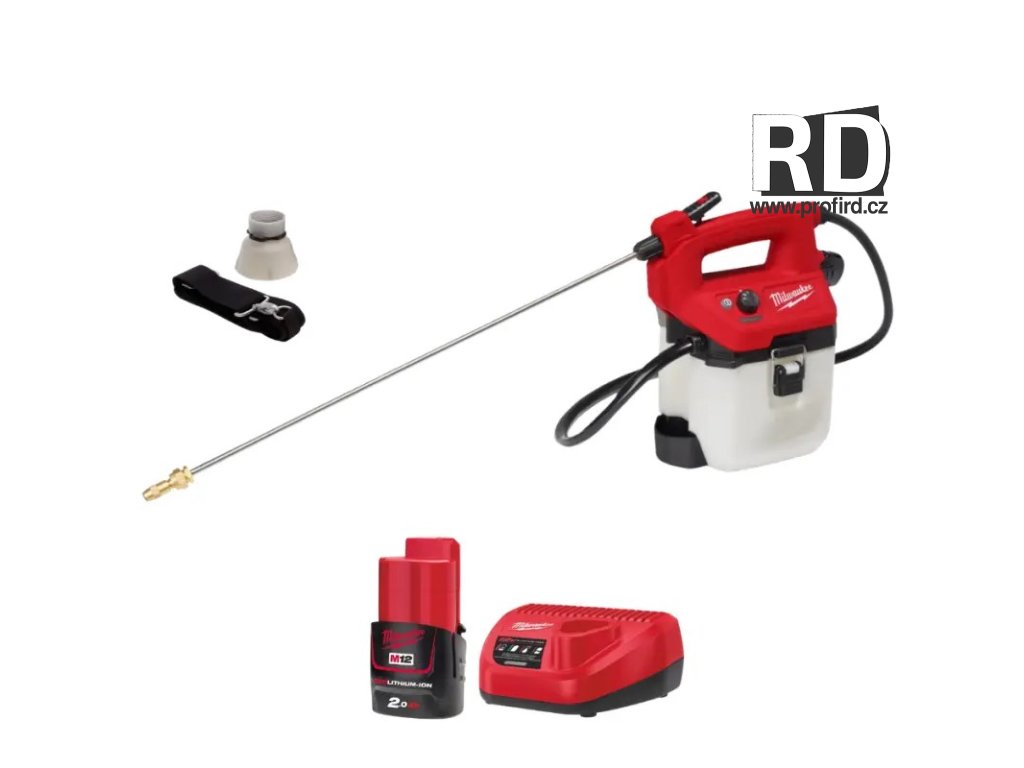 - Na jedno nabití akumulátoru M12™ B2 zajistí až 300 litrů postřiku