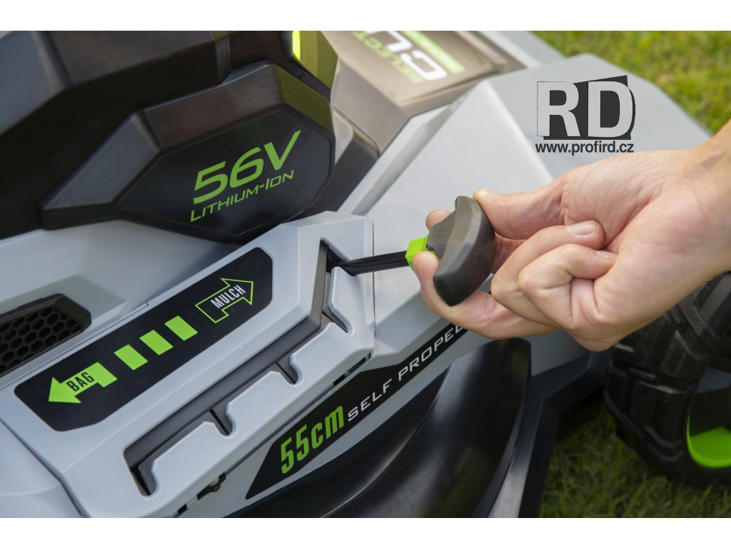 Model EGO LM 2230E-SP - Záběr sečení 55cm, podvozek ze superkompozitu s centrálním nastavením výšky sečení a plynule proměnlivý pojezd, objem sběrného koše 85L, teleskopická a výškově nastavitelná pohodlná rukojeť dělají z tohoto modelu mimořádně komfortní a výkonný stroj. A hlavně dva sekací nože systému "Select Cut ™" dělají z tohoto stroje opravdu zdatného "likvidátora" travního porostu.