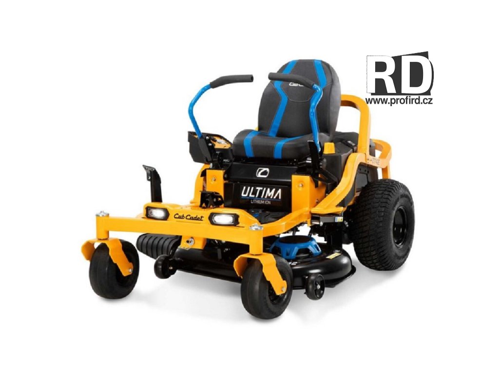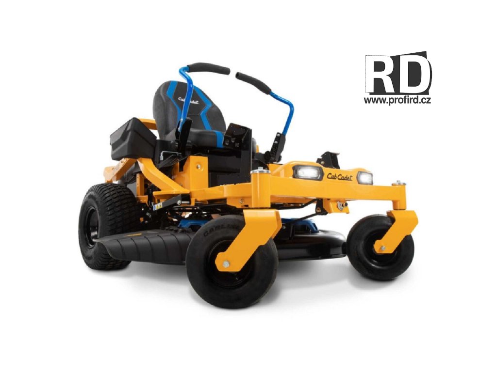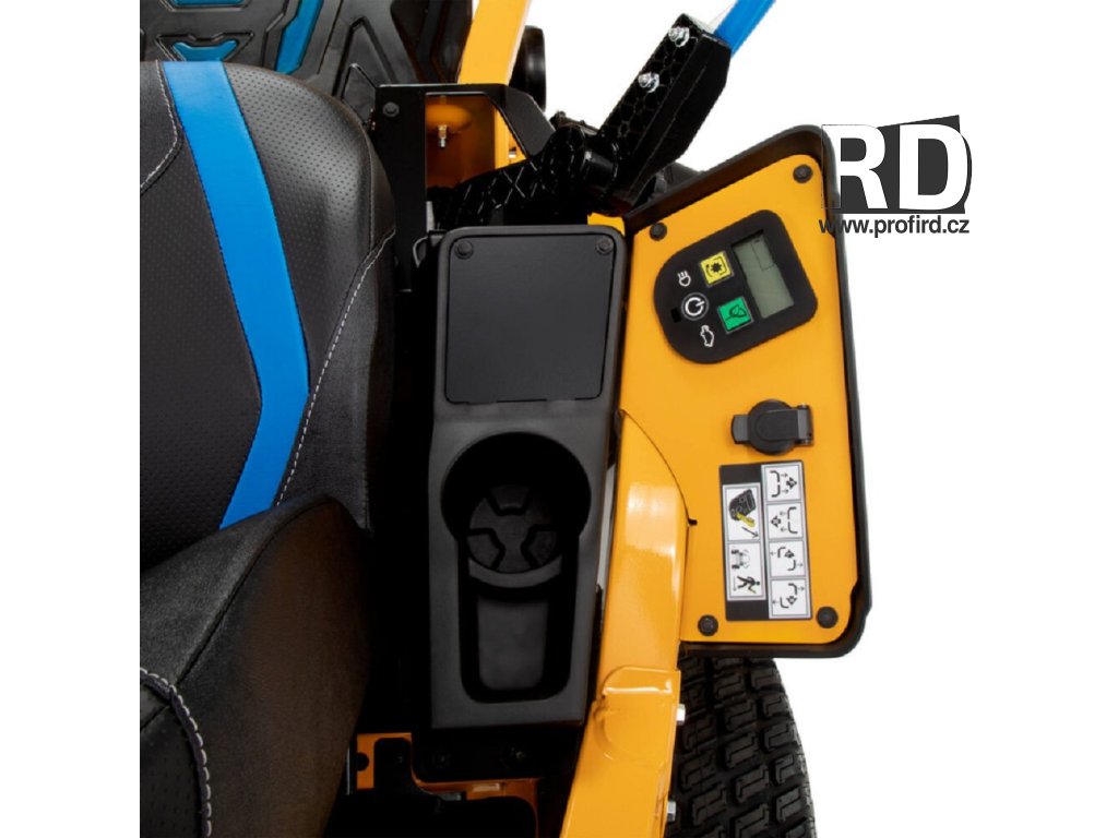 Akumulátorový zahradní rider s bočním výhozem Cub Cadet. Motor: Cub Cadet 56 V / 60 Ah / 3.000 Wh. Záběr: 107 cm.