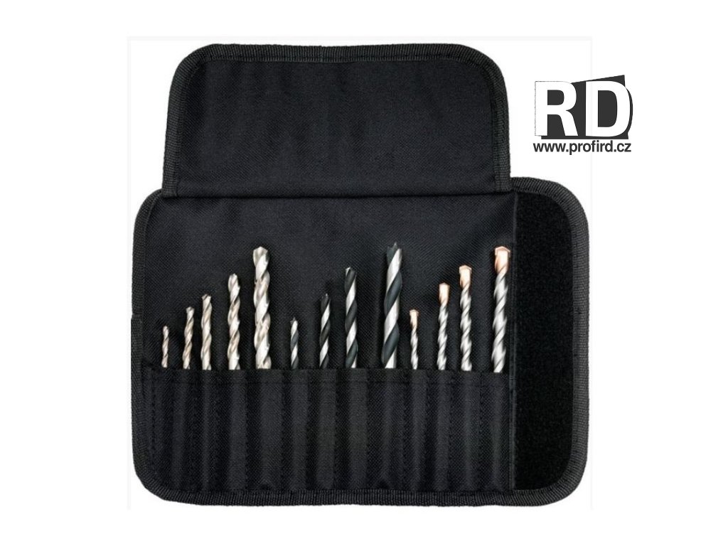 13dílná sada vrtáků (kámen, dřevo, kov) v rolovací tašce