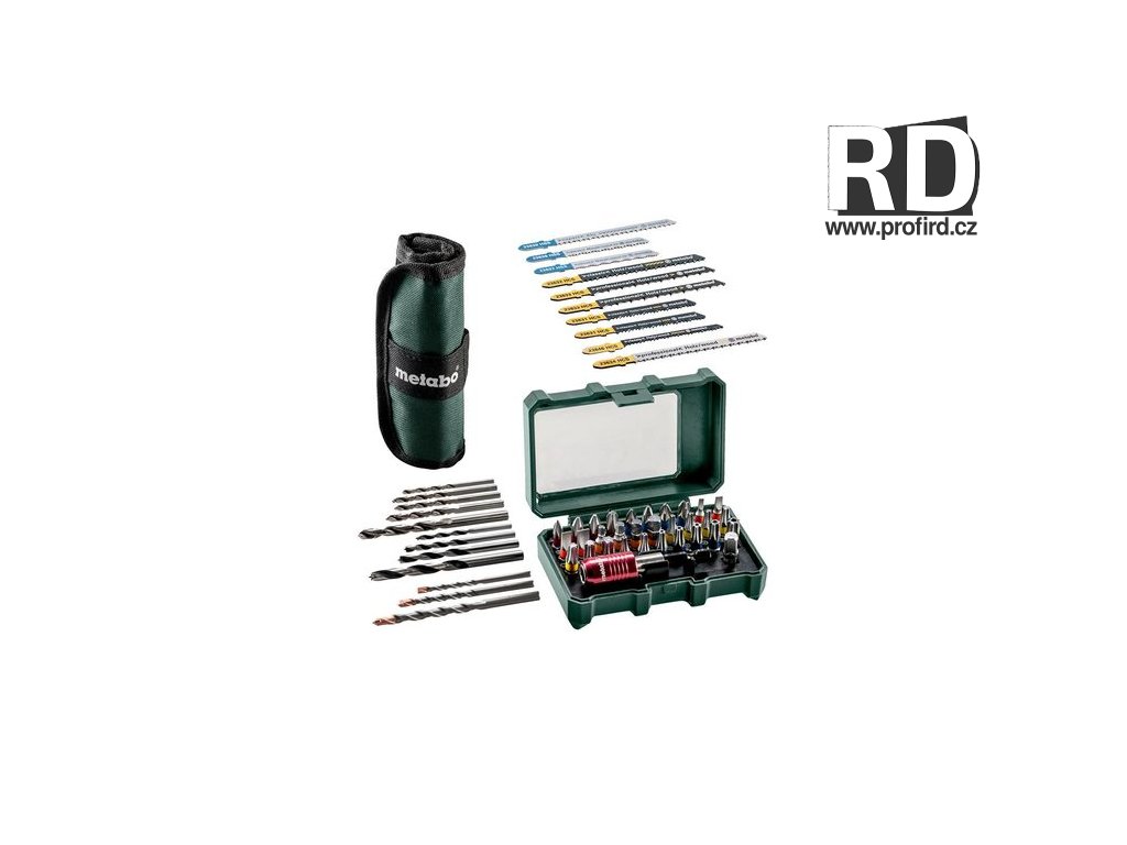 Sada bitů v boxu, vrtáků a plátků do přímočaré pily 55 dílů Metabo v rolovací brašně